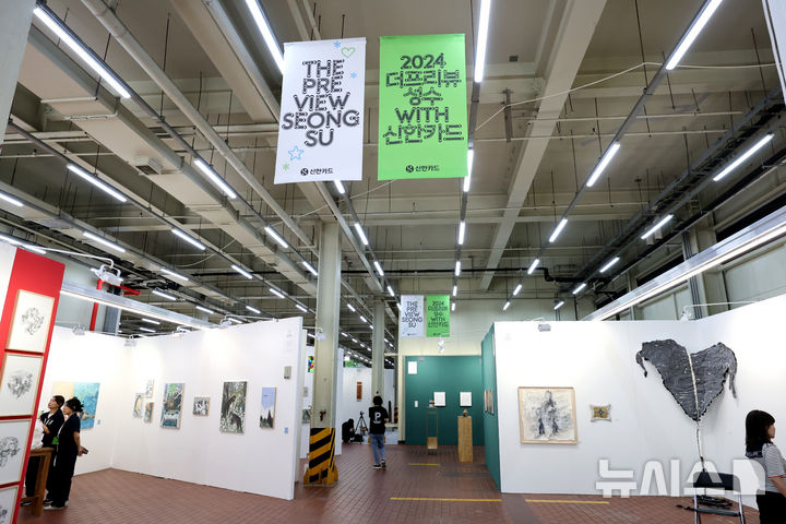 [서울=뉴시스] 박진희 기자 = 아트페어 '더프리뷰 성수 WITH 신한카드 2024' 참여한 ??갤러리가 30일 서울 성동구 에스팩토리 D동 전시장에 주요 작품을 전시하고 있다. '더프리뷰 성수'는 새로운 작가를 발굴하고 아트페어의 문턱을 낮추며 상생 협력의 시스템을 구축해 가는 아트페어이다. '미리보기'를 의미하는 '프리뷰(preview)'는 새로운 갤러리, 작가, 작업을 가장 먼저 소개하는 교류의 장으로 최근 세대 전환에 따른 미술시장의 세 중심축 - 창작자(작가), 수요자(컬렉터), 유통 플랫폼(화랑)- 이 만들어내는 패러다임 변화에 발맞춘 아트페어의 등장을 의미한다. 2024.08.30. [email protected]