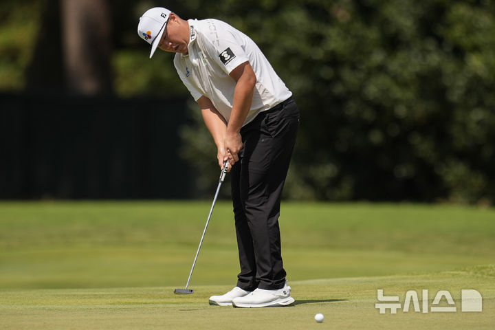 [애틀랜타=AP/뉴시스] 임성재가 30일(현지시각) 미 조지아주 애틀랜타의 이스트레이크 골프클럽에서 열린 미국프로골프(PGA) 투어 페덱스컵 플레이오프 최종전 투어 챔피언십 2라운드 2번 그린에서 퍼팅하고 있다. 임성재는 중간 합계 8언더파 137타 공동 10위에 올랐다. 2024.08.31.
