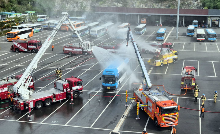 부산소방, 전기버스 화재 대응 합동소방훈련