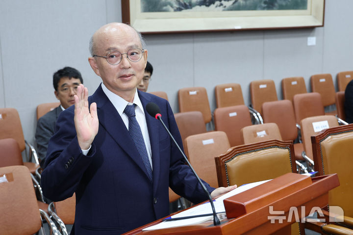 [서울=뉴시스] 권창회 기자 = 3일 오전 서울 여의도 국회에서 열린 운영위원회 전체회의 국가인권위원회 위원장 후보자 인사청문회에서 안창호 후보자가 선서하고 있다. 2024.09.03. [email protected]