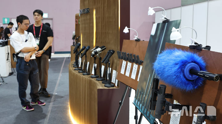 [서울=뉴시스] 김금보 기자 = 4일 서울 강남구 SETEC에서 열린 '2024 국제 무대음향 영상 산업전(KOSOUND+STAGETECH)'에서 관람객이 음향기기를 살펴보고 있다. 2024.09.04. [email protected]