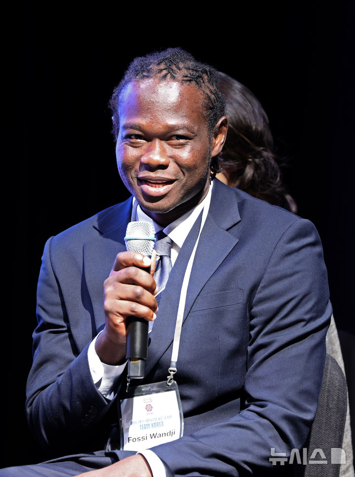 [서울=뉴시스] 김금보 기자 = 4일 서울 종로구 노무현시민센터에서 열린 '서울2024 홈리스월드컵 팀코리아 출정식'에서 팀코리아 포지 완지가 포부를 말하고 있다. 2024.09.04. [email protected]