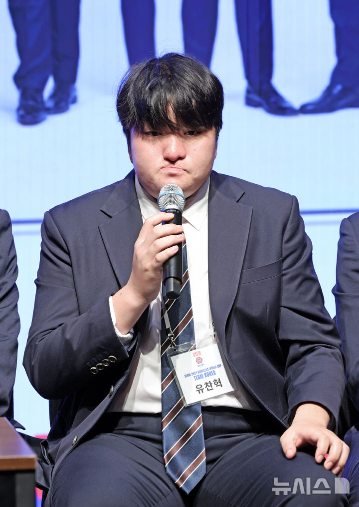 [서울=뉴시스] 김금보 기자 = 4일 서울 종로구 노무현시민센터에서 열린 '서울2024 홈리스월드컵 팀코리아 출정식'에서 팀코리아 유찬혁이 포부를 말하고 있다. 2024.09.04. [email protected]