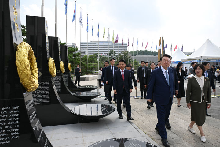 6.25전쟁 참전국 기념비 둘러보는 윤 대통령