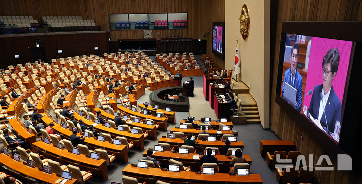 [서울=뉴시스] 고승민 기자 = 김용현 국방부 장관이 10일 서울 여의도 국회에서 열린 제418회 국회(정기회) 제5차 본회의 외교, 통일, 안보에 관한 질문에서 의원 질의에 답하고 있다.