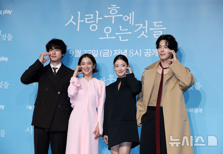 [서울=뉴시스] 김혜진 기자 = 배우 사카구치 켄타로, 나카무라 안, 이세영, 홍종현이 12일 오전 서울 중구 웨스틴조선에서 열린 쿠팡플레이 시리즈 '사랑 후에 오는 것들'(감독 문현성) 제작발표회에서 포즈를 취하고 있다.