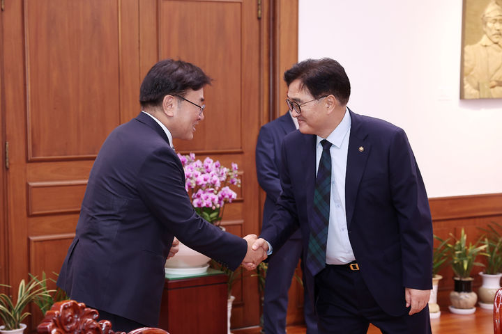 [서울=뉴시스]우원식 국회의장이 12일 오후 서울 여의도 국회에서 유상임 과학기술정보통신부 장관을 접견하고 있다. (사진=국회의장실 제공) 2024.09.12. [email protected] *재판매 및 DB 금지