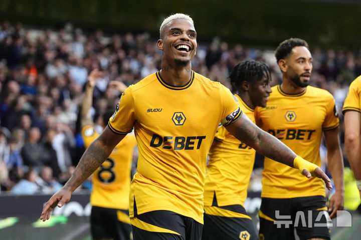 [울버햄프턴=AP/뉴시스] 울버햄프턴 원더러스의 마리오 르미나가 15일(현지시각) 영국 울버햄프턴의 몰리뉴 스타디움에서 열린 2024-25시즌 프리미어리그 4라운드 뉴캐슬 유나이티드와 경기 전반 36분 선제골을 넣은 후 환호하고 있다. 이날 황희찬은 후반 26분 교체 출전했으며 팀은 1-2로 역전패했다. 2024.09.16.