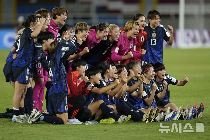 [칼리=AP/뉴시스] 일본 선수들이 18일(현지시각) 콜롬비아 칼리의 파스쿠알 게레로 경기장에서 열린 국제축구연맹(FIFA) 20세 이하(U20) 여자 월드컵 준결승에서 네덜란드를 꺾은 후 기념 촬영하고 있다. 일본은 마츠쿠보 마나카의 멀티 골로 네덜란드를 2-0으로 꺾고 결승에 올라 미국을 물리치고 올라온 북한과 우승을 다툰다. 2024.09.19.