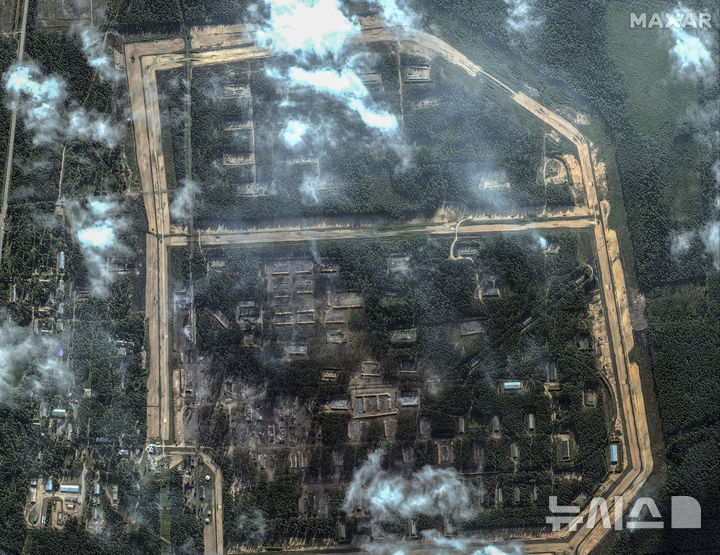 [옥탸브리스키=AP/뉴시스] 맥사 테크놀로지스사가 제공한 위성 사진에 지난 22일(현지시각) 러시아 남부 옥탸브리스키에 있는 러시아군 탄약고가 우크라이나의 드론 공습으로 파괴돼 있다. 2024.09.24.