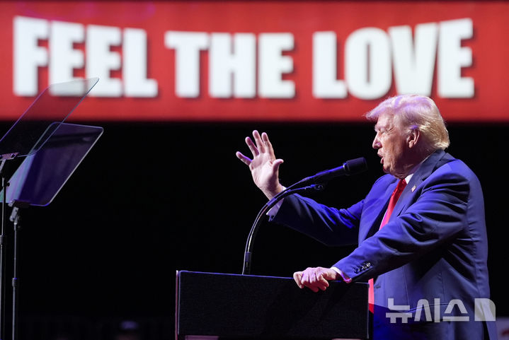 [인디애나=AP/뉴시스] 미국 공화당 대선 후보 도널드 트럼프 전 대통령이 23일(현지시각) 펜실베이니아주 인디애나 대학에서 유세 연설하고 있다. 트럼프 전 대통령은 "카멀라 해리스 부통령은 공산주의자"라면서 "우리는 공산주의자 대통령을 맞을 준비가 돼 있지 않다"라고 주장했다. 2024.09.24.
