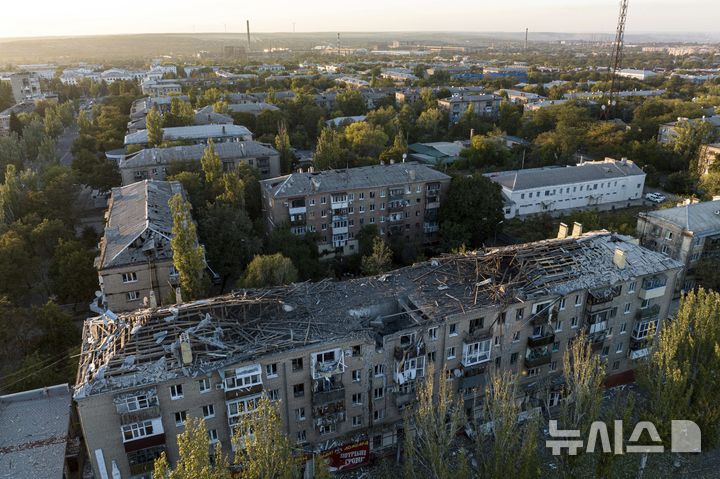 [크라마토르스크(우크라이나)=AP/뉴시스]우크라이나 도네츠크 지역 크라마토르스크의 주택들이 25일 러시아군의 공습으로 심하게 파괴돼 있다. 우크라이나의 방공 시스템이 5시간 동안 계속된 키이우에 대한 러시아의 야간 공중 공격을 격퇴했다고 우크라이나 관리들이 26일 밝혔다. 2024.09.26.