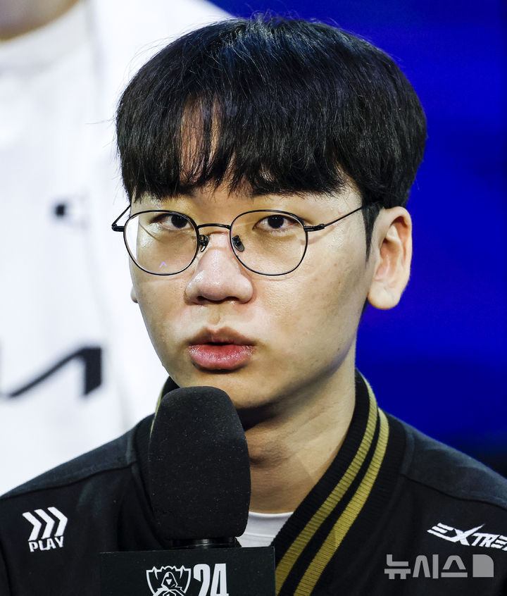 [서울=뉴시스] 정병혁 기자 = 한화생명e스포츠 '도란' 최현준이 26일 서울 종로구 롤파크 LCK 아레나에서 열린 2024 리그 오브 레전드(LoL) 월드 챔피언십 LCK 대표팀 미디어데이에서 취재진의 취재진의 질문에 답하고 있다. 2024.09.26. [email protected]