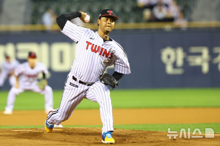 [서울=뉴시스] 황준선 기자 = 26일 서울 송파구 잠실야구장에서 열린 2024 KBO리그 키움 히어로즈와 LG 트윈스의 경기, 1회 초 LG 선발 에르난데스가 공을 던지고 있다. 2024.09.26. [email protected]