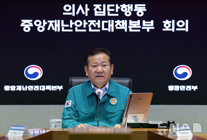 [서울=뉴시스] 배훈식 기자 = 이상민 행정안전부 장관이 27일 오전 서울 종로구 정부서울청사에서 열린 의사 집단행동 중앙재난안전대책본부 회의에서 발언하고 있다. 2024.09.27. [email protected]