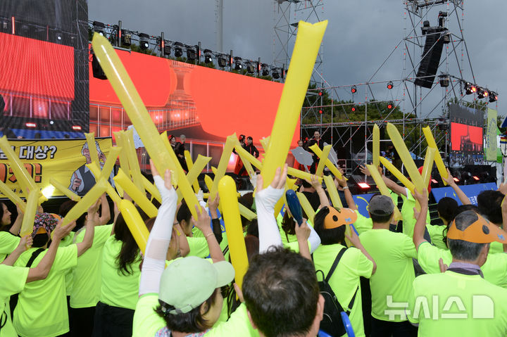 [울산=뉴시스] 배병수 기자 = 28일 오후 울산 남구 장생포야구장에서 ‘2024 울산고래축제’ 우리동네 명물내기 공연이 열리고 있다. 2024.09.28. [email protected]