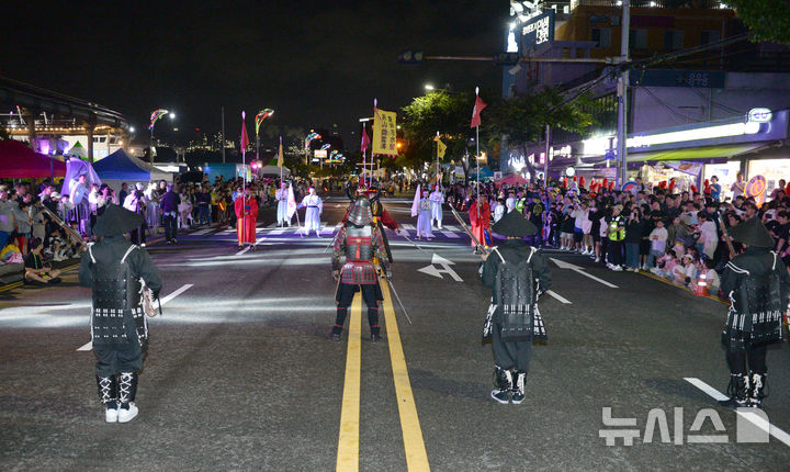 [울산=뉴시스] 배병수 기자 = 28일  오후 울산 남구 장생포고래박물관에서 ‘2024 울산고래축제’ 야간 퍼레이드가 진행되고 있다. 2024.09.28. [email protected]