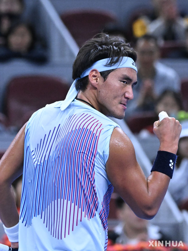 [베이징=신화/뉴시스] 부 윤차오케테(96위·중국)가 지난달 30일 중국 베이징에서 열린 2024 차이나오픈(ATP500) 남자 단식 8강전에서 안드레이 루블레프(6위·러시아)와 경기 중 득점하고 있다. 와일드카드로 이번 대회에 출전한 부는 루블레프를 2-0(7-5 6-4)으로 꺾고 4강에 올라 얀니크 신네르(1위·이탈리아)와 결승 진출을 다툰다. 2024.10.01.