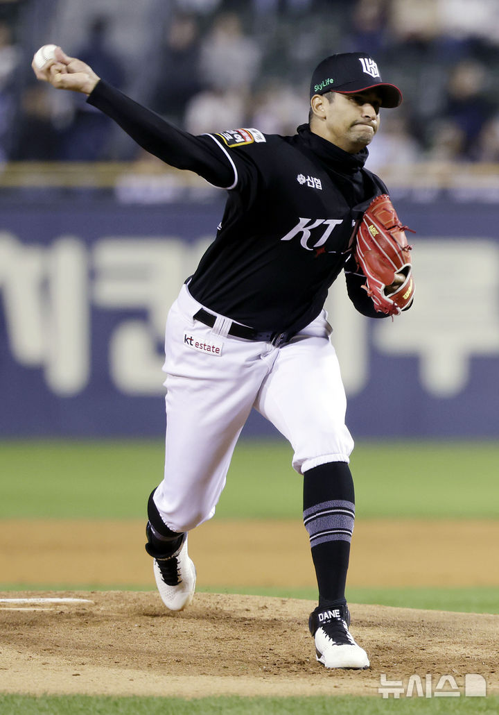 [서울=뉴시스] 최동준 기자 = 2일 서울 잠실야구장에서 열린 2024 KBO리그 와일드카드 1차전 kt 위즈와 두산 베어스 경기, kt 선발 쿠에바스가 역투하고 있다. 2024.10.02. [email protected]