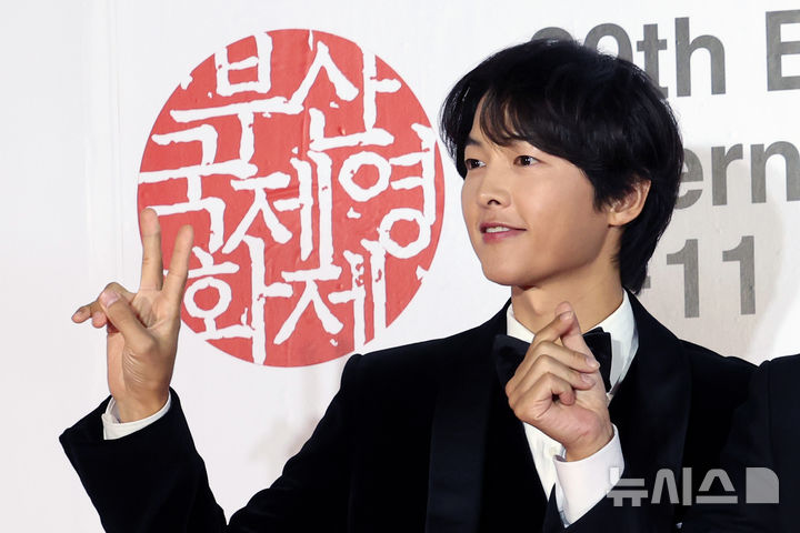 [부산=뉴시스] 박진희 기자 = 영화 '보고타: 마지막 기회의 땅' 배우 송중기가 2일 부산 해운대구 영화의전당에서 열린 제29회 부산국제영화제 개막식 레드카펫 행사에 참석하고 있다. 2023.10.02. [email protected]
