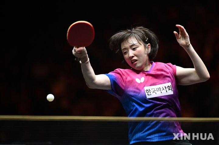 [베이징=신화/뉴시스] 서효원이 4일 중국 베이징에서 열린 2024 세계탁구연맹(WTT) 차이나 스매시 여자 단식 8강전에서 천싱퉁(중국)과 경기하고 있다. 서효원이 0-4(9-11 5-11 4-11 5-11)로 완패하며 4강에 오르지 못했다. 2024.10.05.