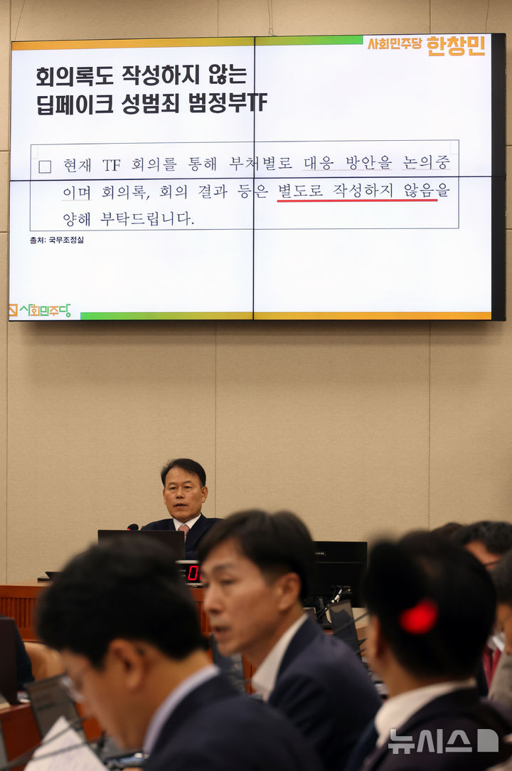 [서울=뉴시스] 고승민 기자 = 한창민 사회민주당 의원이 7일 서울 여의도 국회에서 열린 정무위원회의 국무조정실, 국무총리비서실 등 국정감사에서 질의하고 있다. 2024.10.07. [email protected]