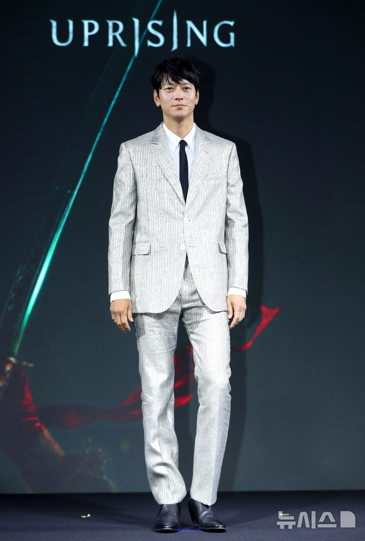 [서울=뉴시스] 김혜진 기자 = 배우 강동원이 10일 오전 서울 종로구 JW메리어트 동대문에서 열린 넷플릭스 영화 '전,란' 제작보고회에서 포즈를 취하고 있다.