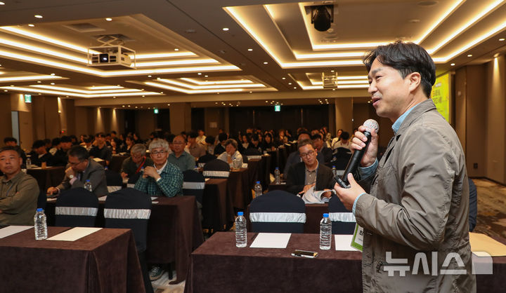 [제주=뉴시스] 우장호 기자 = 최진우 가로수시민연대 대표가 11일 오후 제주시 썬호텔 대회의장에서 제주도 주최·제주국제컨벤션센터 주관·산림청 서부지방산림청 후원으로 열린 '2024 제1회 나무포럼'에서 '도시숲 정책이 나아갈 방향'을 주제로 발표하고 있다. 2024.10.11. [email protected]