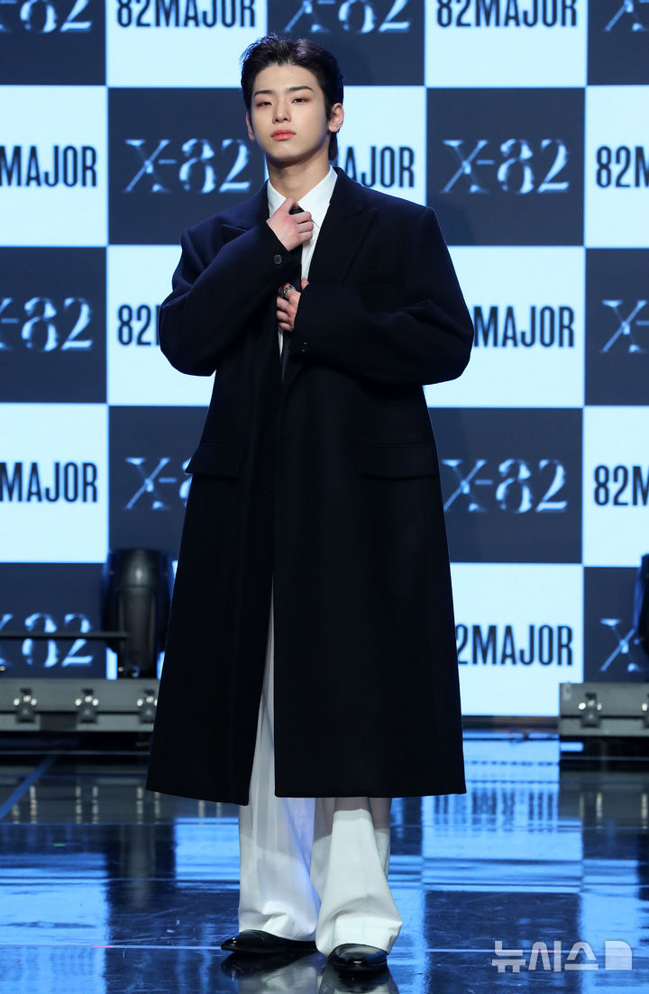 [서울=뉴시스] 김혜진 기자 = 그룹 82메이저 김도균이 15일 오전 서울 강남구 일지아트홀에서 열린 두 번째 미니앨범 'X-82(엑스-82)' 발매 기념 쇼케이스에서 포즈를 취하고 있다.