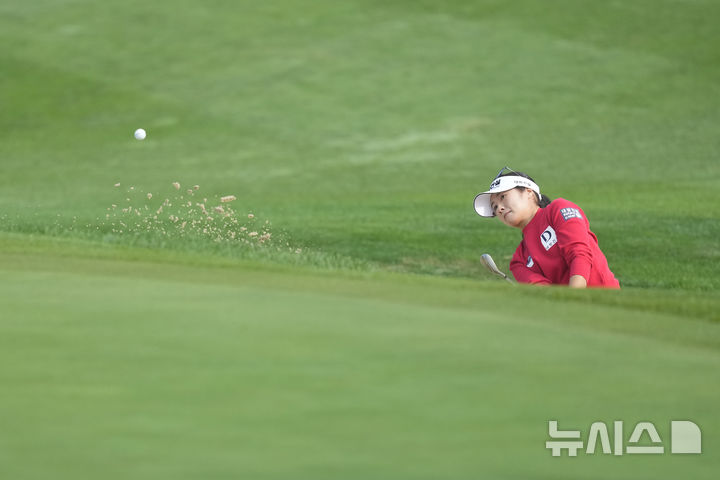 [파주=AP/뉴시스] 이정은6이 17일 오후 경기도 파주 서원밸리 컨트리클럽에서 열린 미국여자프로골프(LPGA) 투어 BMW 레이디스 챔피언십 첫날 1번 홀 벙커에서 샷하고 있다. 이정은6은 5언더파 67타로 김효주, 김아림 등과 공동 11위에 올랐다. 2024.10.17.