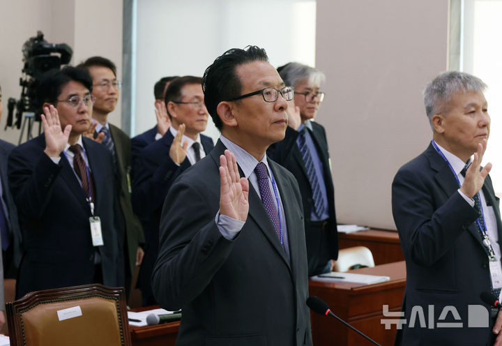 [서울=뉴시스] 고승민 기자 = 한상준 영화진흥위원장이 17일 서울 여의도 국회에서 열린 문화체육관광위원회의 한국콘텐츠진흥원 등 국정감사에서 증인선서를 하고 있다. 2024.10.17. [email protected]