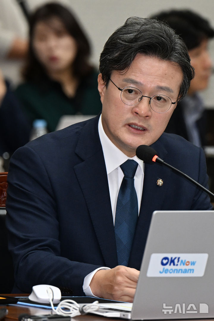 [무안=뉴시스] 박기웅 기자 = 채현일 더불어민주당 의원이 21일 오전 전남 무안군 전남도청에서 열린 국회 행정안전위원회 전남도 국정감사에서 질의하고 있다. 2024.10.21. [email protected]