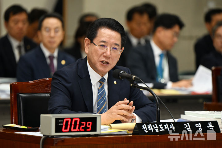 [무안=뉴시스] 박기웅 기자 = 김영록 전남도지사가 21일 오전 전남 무안군 전남도청에서 열린 국회 행정안전위원회 전남도 국정감사에서 의원 질의에 답변하고 있다. 2024.10.21. [email protected]