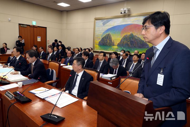[서울=뉴시스] 조성봉 기자 = 함윤식 우아한형제들 부사장이 21일 오후 서울 여의도 국회 정무위원회에서 열린 공정거래위원회, 한국소비자원 등에 대한 국정감사에서 의원들의 질의에 굳은 표정을 짓고 있다. 2024.10.21. [email protected]