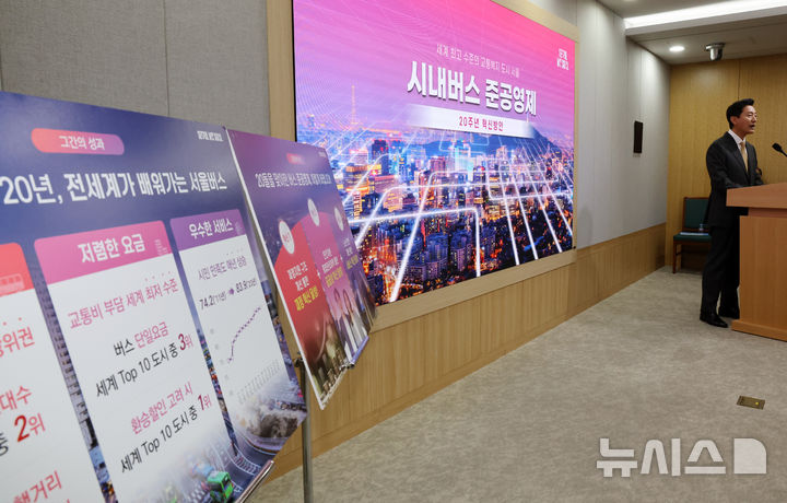 [서울=뉴시스] 배훈식 기자 = 오세훈 서울시장이 22일 오전 서울 중구 시청에서 시내버스 준공영제 혁신방안 브리핑을 하고 있다. 2024.10.22. [email protected]