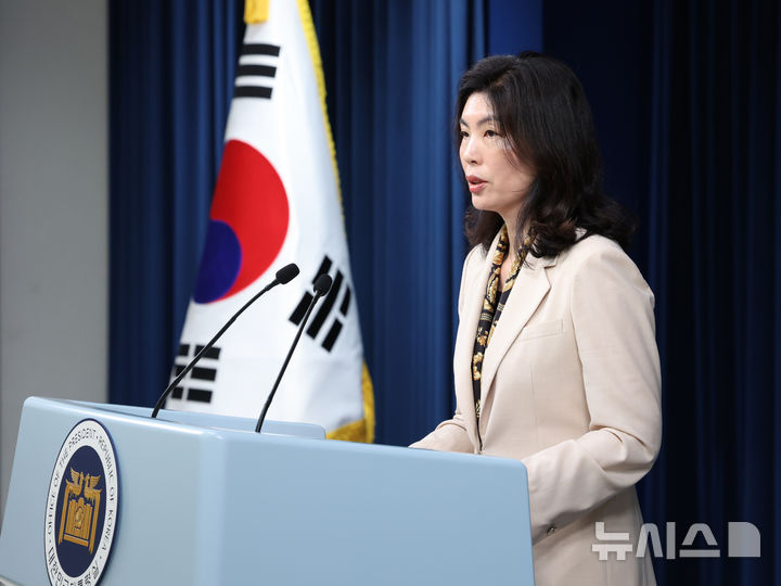 [서울=뉴시스] 조수정 기자 = 유혜미 대통령실 저출생대응수석이 27일 서울 용산 대통령실 청사에서 현안 브리핑을 하고 있다. 2024.10.27. [email protected]