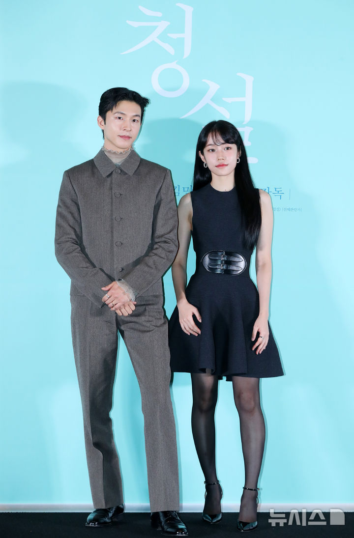 [서울=뉴시스] 김혜진 기자 = 배우 홍경(왼쪽), 노윤서가 18일 오후 서울 강남구 메가박스 코엑스에서 열린 영화 '청설'(감독 조선호) 언론시사회에서 포즈를 취하고 있다.