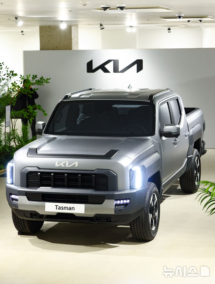 [서울=뉴시스] 황준선 기자 = 지난 28일 서울 송파구 호텔 파크하비오에서 열린 더 기아 타스만 미디어 프리뷰에서 기아가 출시하는 첫 픽업트럭인 '타스만'이 공개되고 있다. 2024.10.29. [email protected]