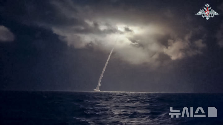 [러시아=AP/뉴시스] 러시아 국방부가 공개한 영상 사진에 29일(현지시각) 러시아 해군이 오호츠크해에서 잠수함발사탄도미사일(SLBM) 불라바를 시험 발사하고 있다. 러시아는 상대의 핵 공격 상황에 대비해 미사일 시험 발사 등 대규모 핵 공격 훈련을 했다. 2024.10.30.
