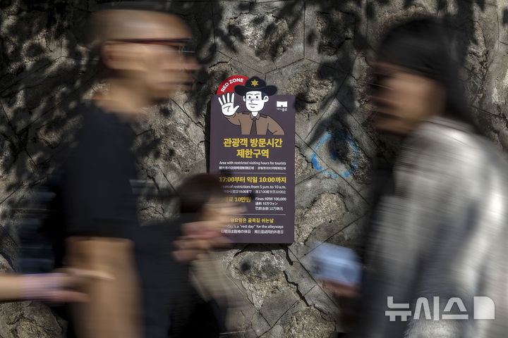 [서울=뉴시스] 정병혁 기자 = 3일 서울 종로구 북촌한옥마을에 관광객 방문 제한 관련 안내판이 설치되어 있다.