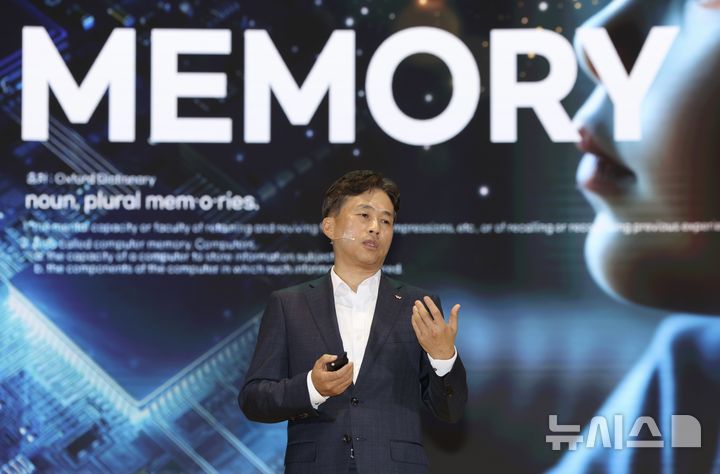 [서울=뉴시스] 김명년 기자 = 곽노정 SK하이닉스 대표이사 사장이 4일 오전 서울 강남구 코엑스에서 열린 SK AI 서밋 2024에서 ‘차세대 Al Memory의 새로운 여정 : 하드웨어를 넘어 일상으로’를 주제로 발표하고 있다. 2024.11.04. [email protected]