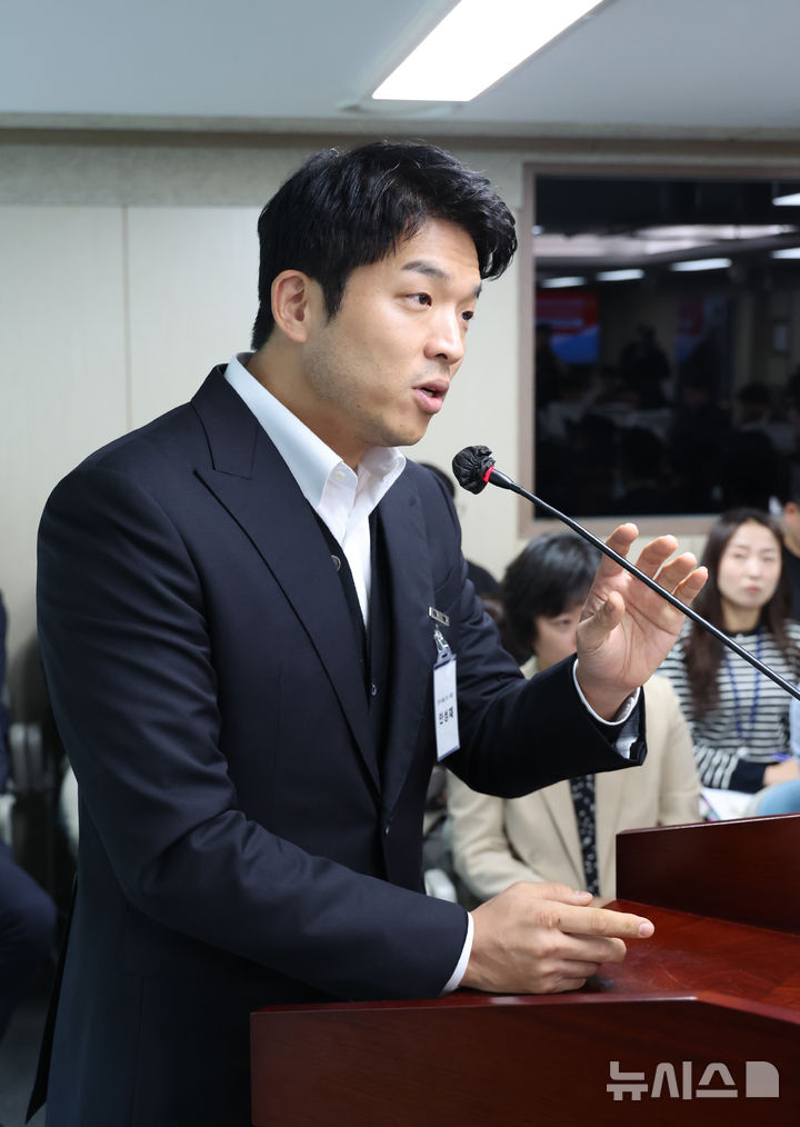 [서울=뉴시스] 김금보 기자 = 안성재 셰프가 8일 오전 서울 중구 서울시의회 의원회관에서 열린 '서울시의회 문화체육관광위원회 행정사무감사'에 증인으로 출석해 의원질의에 답하고 있다. 2024.11.08. [email protected]