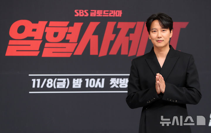 [서울=뉴시스] 김혜진 기자 = 배우 김남길이 8일 오후 서울 양천구 SBS에서 열린 SBS 새 금토드라마 '열혈사제2' 제작발표회에서 포즈를 취하고 있다.