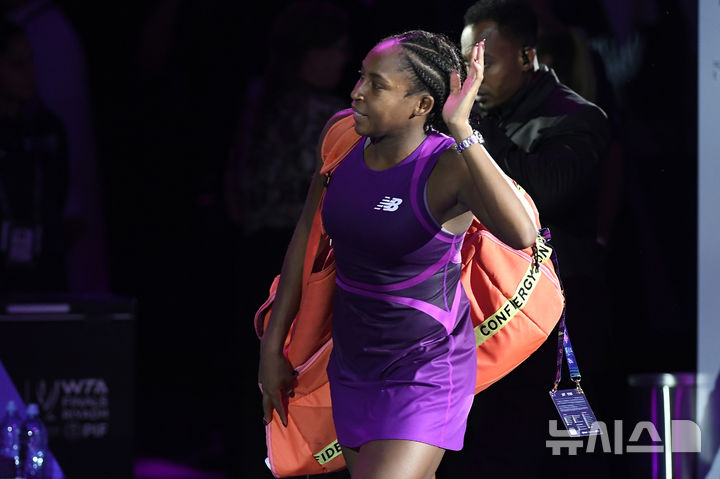 [리야드=AP/뉴시스] 코코 고프(3위·미국)가 8일(현지시각) 사우디 리야드에서 열린 2024 여자프로테니스(WTA) 투어 파이널스 단식 4강전에서 아리나 사발렌카(1위·벨라루스)를 꺾은 후 퇴장하며 팬들에게 인사하고 있다. 고프가 2-0(7-6 6-3)으로 승리하고 결승에 올라 정친원(7위·중국)과 우승을 다툰다. 고프가 우승하면 2004년 마리야 샤라포바(러시아) 이후 이 대회 최연소 단식 우승자가 된다. 2024.11.09.