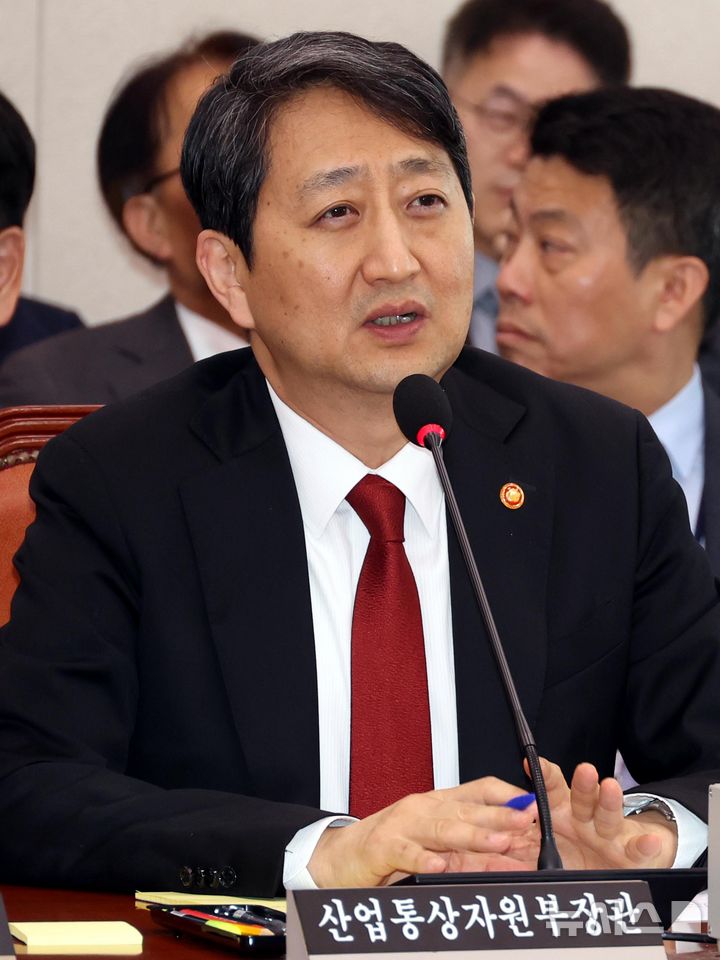 [서울=뉴시스] 조성봉 기자 = 안덕근 산업통상자원부 장관이 12일 오후 서울 여의도 국회에서 열린 산업통상자원중소벤처기업위원회 전체회의에서 2025년도 정부 예산안 관련 의원들의 질의에 답변하고 있다. 2024.11.12. [email protected]
