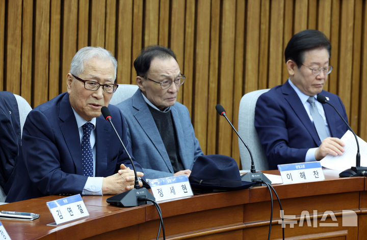 [서울=뉴시스] 고승민 기자 = 정세현 전 통일부 장관이 13일 서울 여의도 국회에서 열린 외교안보통일자문회의 출범식에서 발언하고 있다. 2024.11.13. [email protected]