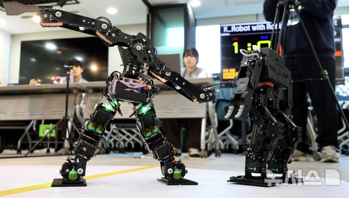 [서울=뉴시스] 추상철 기자 = 17일 오후 서울 노원구 광운대학교에서 열린 'K청소년 미래과학대회'에서 청소년들이 제작한 휴머로이드 로봇 격투 대회가 열리고 있다. 2024.11.17. [email protected]