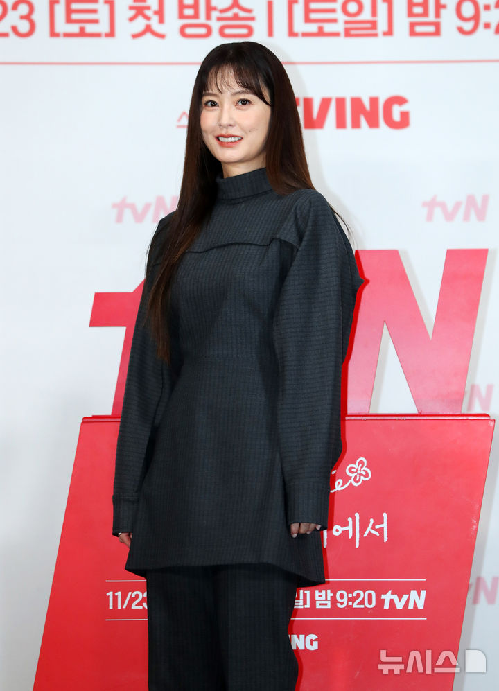[서울=뉴시스] 김혜진 기자 = 배우 정유미가 18일 오후 서울 구로구 라마다 신도림에서 열린 tvN 드라마 '사랑은 외나무다리에서' 제작발표회에서 포즈를 취하고 있다.