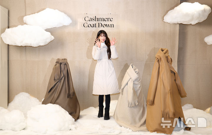 [서울=뉴시스] 황준선 기자 = 그룹 아이브의 장원영이 24일 서울 중구 명동 아이더 샤모니명동점에서 열린 아이더 ‘캐시미어 코트 다운’ 출시 기념 팝업스토어 행사에 참석해 포토타임을 가지고 있다. 2024.11.24. [email protected]