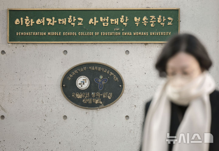 [서울=뉴시스] 정병혁 기자 = 이화여대 사범대학 부속 중학교와 고등학교가 내년 3월부터 6년 교육과정을 통합 운영한다. 서울시교육청은 이화금란고등학교(이대부고)와 이화금란중학교(이대부중)을 이음학교(서울형 통합운영학교)로 지정·운영한다고 밝혔다. 이음학교는 학생 수 감소에 따른 학교의 영세성 극복을 위해 초등학교-중학교 또는 중학교-고등학교 등 학교급이 다른 2개 이상 학교의 교육활동을 연계해 운영하는 통합 모델이다. 사진은 25일 서울 서대문구 이화금란중학교. 2024.11.25. [email protected]